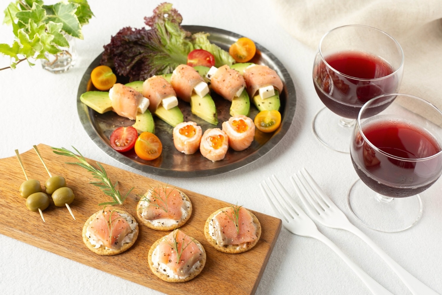 ご自宅でちょっと特別な食卓を楽しみたい方にもおすすめです。クラッカーにのせるだけで、見た目も華やかなパーティーメニューが完成。サラダやワインと合わせれば、週末のご褒美ディナーにもぴったりです。