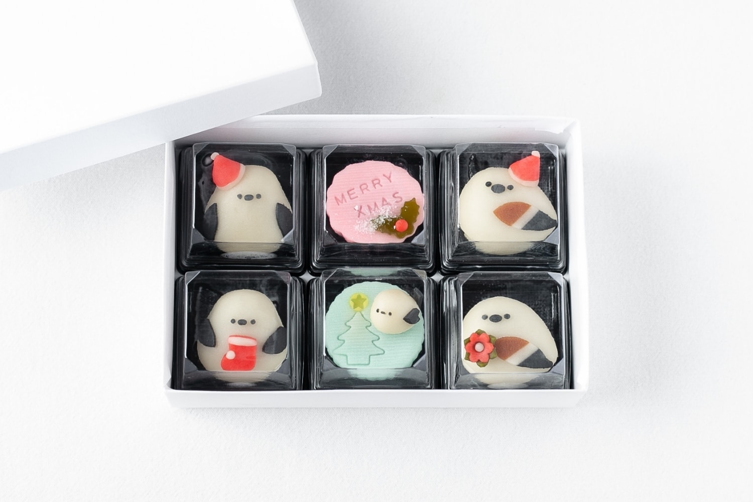 サンタ帽をかぶったシマエナガや、クリスマスソックスを抱えたシマエナガなど、箱を開けた瞬間に笑顔がこぼれる可愛らしいデザインです。