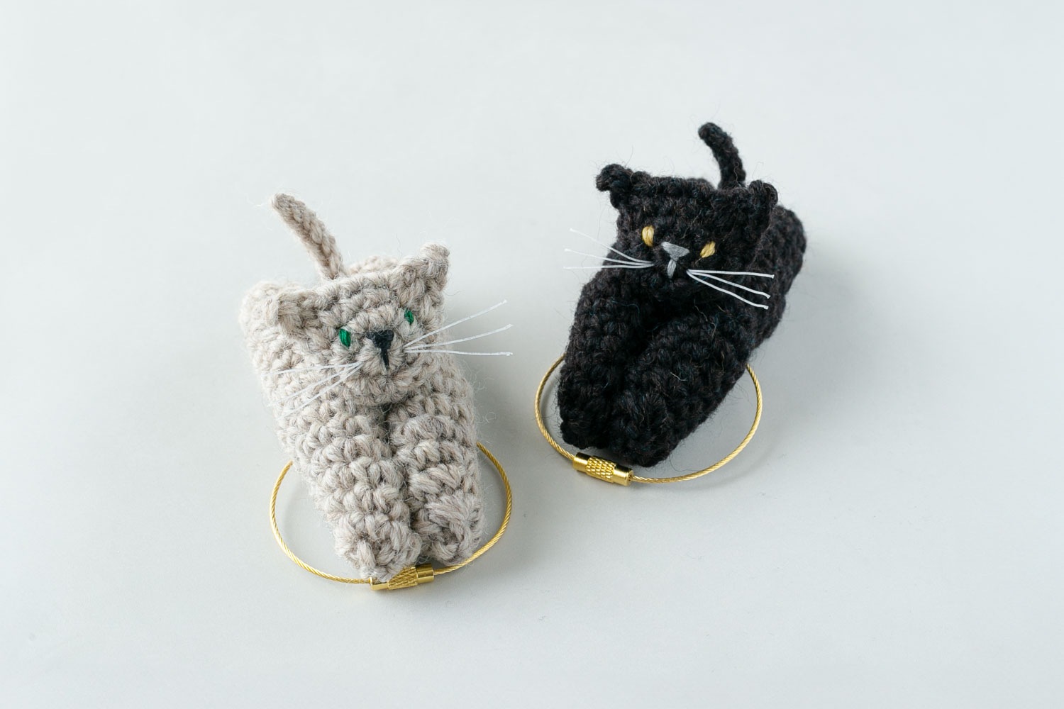 くっつく機能を備えた、あみぐるみのネコ。ワイヤーキーチェーンつきなので、紛失を心配せずに、どこへでも連れていくことができます。