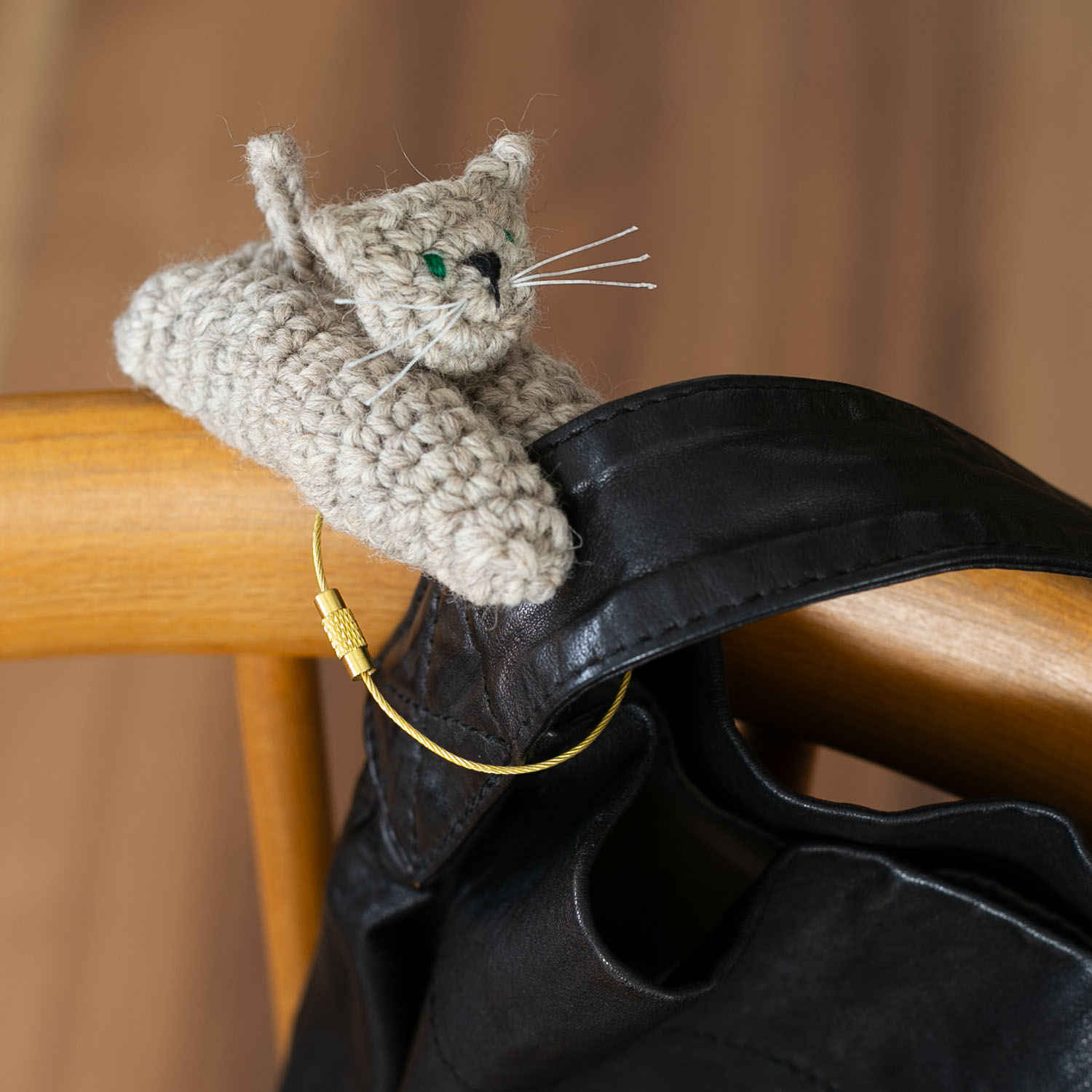 バッグチャームとしてお出かけのおともにできる、安心のワイヤーキーリングつき。あなたの相棒ネコが、バッグの持ち手にギュッとつかまってくれます。