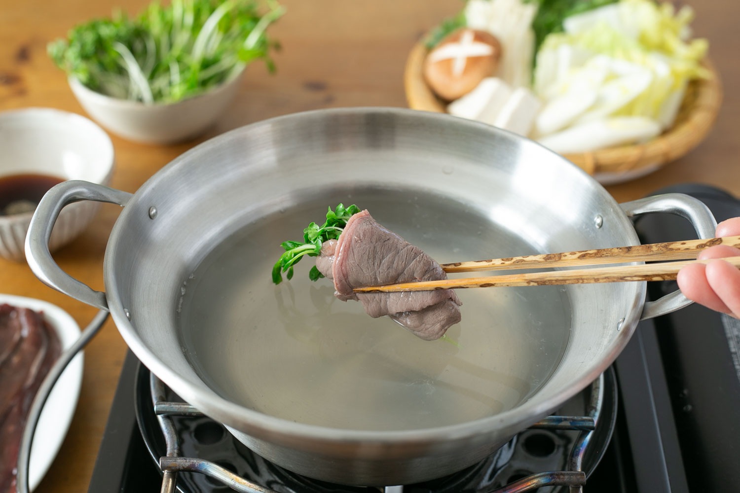 その鹿肉を、同じく和食である「しゃぶしゃぶ」で味わう”和”の組み合わせは、相性抜群だと考えています。