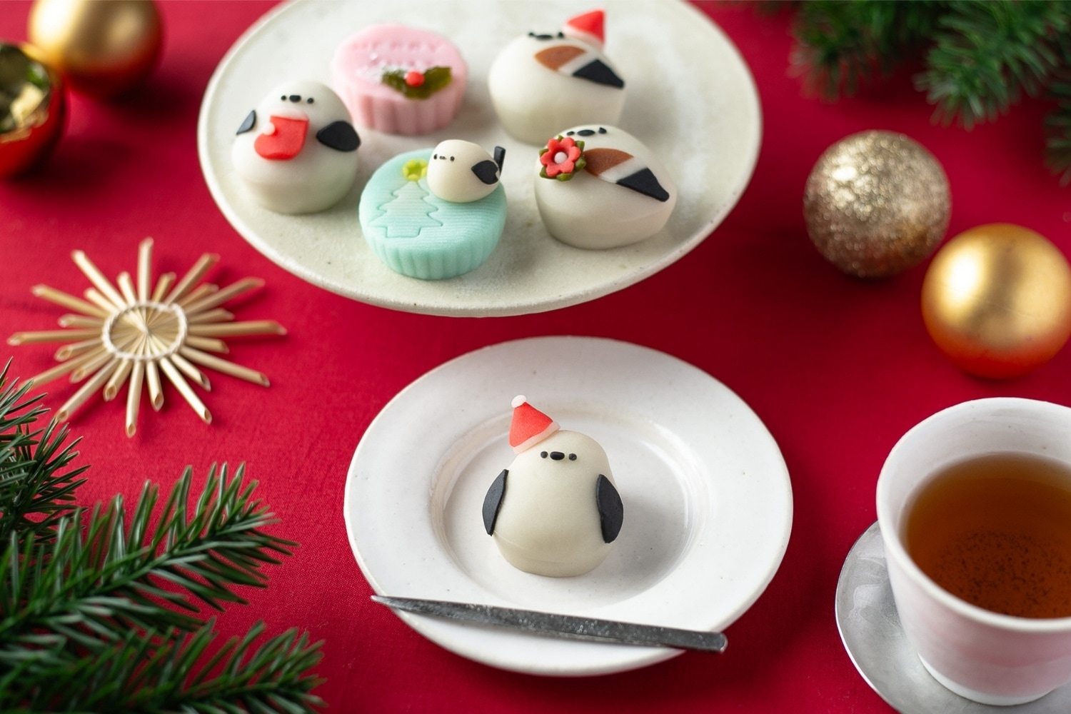 北海道の冬を彩る「雪の妖精」シマエナガ。その愛らしい姿を、クリスマス限定デザインの練り切りで表現しました。 サンタ帽や柊、クリスマスツリーなど、季節感あふれるモチーフを職人が一つひとつ丁寧に手作業で仕上げています。 昭和45年創業の小樽の和菓子店「つくし牧田」が、先代から受け継いだ素材と職人技で丁寧に仕上げた練り切りは、 しっとりとした口どけとやさしい甘さが広がります。